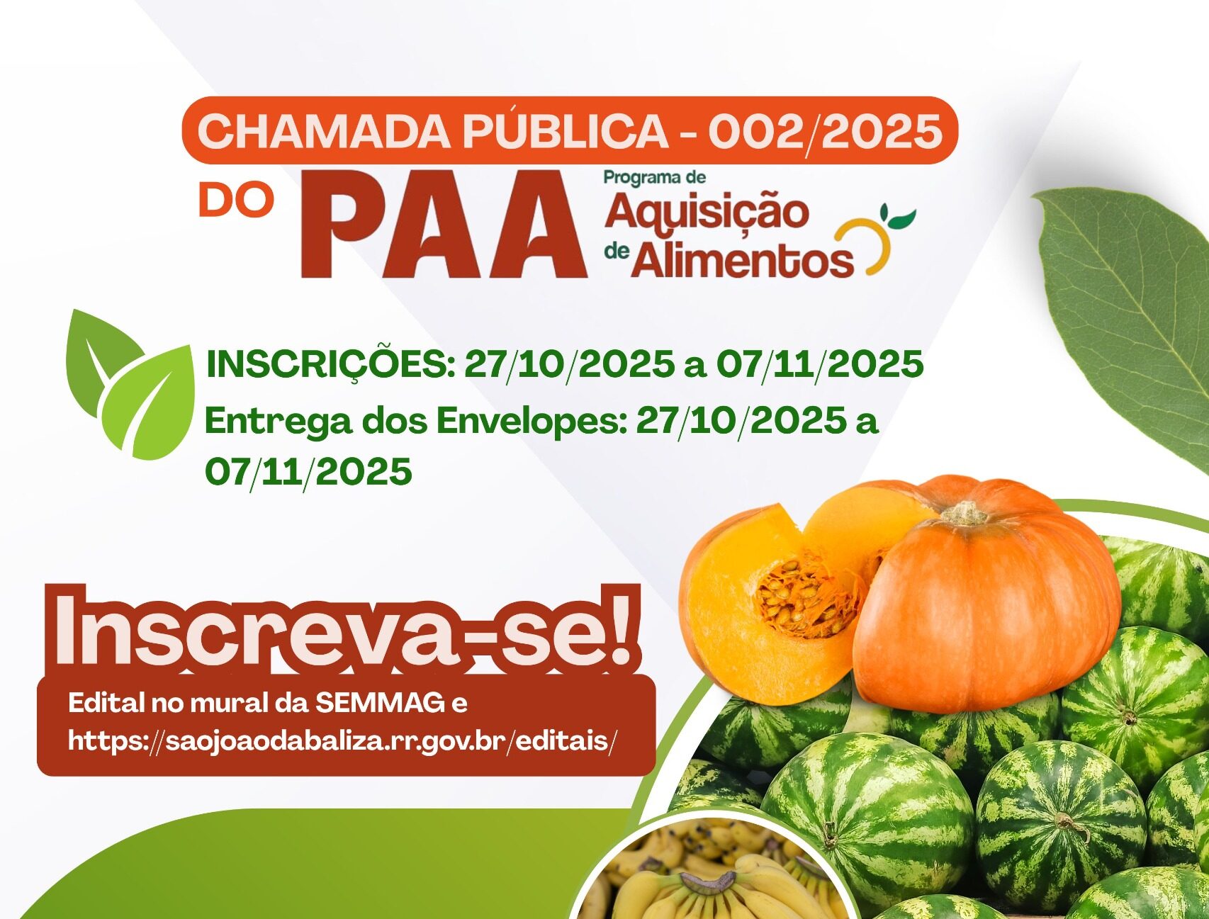 🌐 Edital disponível em: https://saojoaodabaliza.rr.gov.br/downloads/edital-de-chamamento-publico-no-002-2025-paa-municipal/